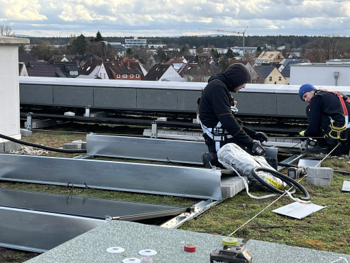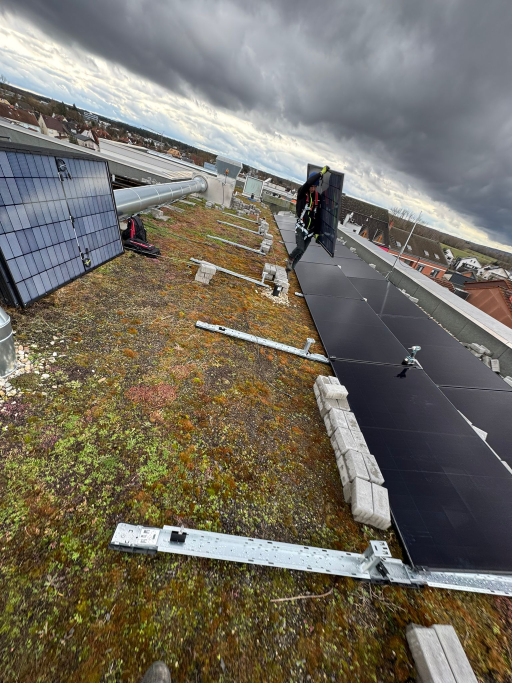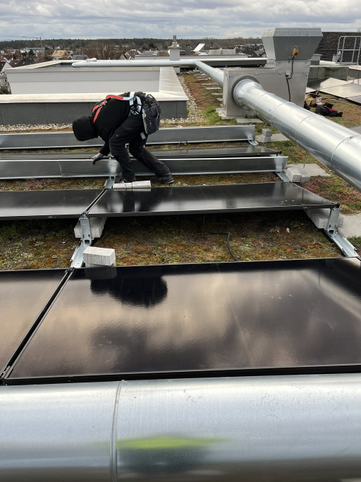 Nachdem alle Module sicher auf das Dach gebracht wurden.