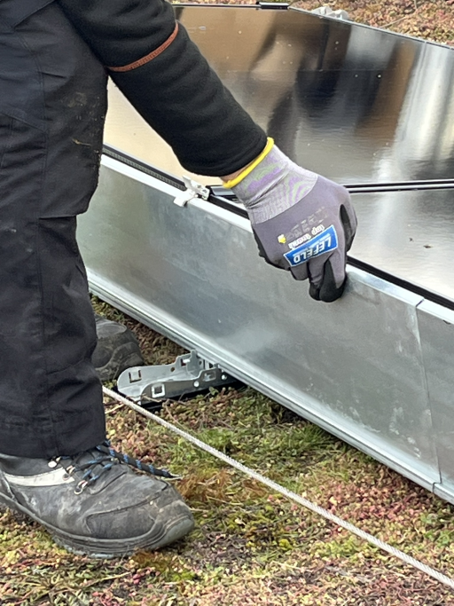 Die ersten Reihen liegen, mit Ballast gesichert gegen "windige" Überraschungen.